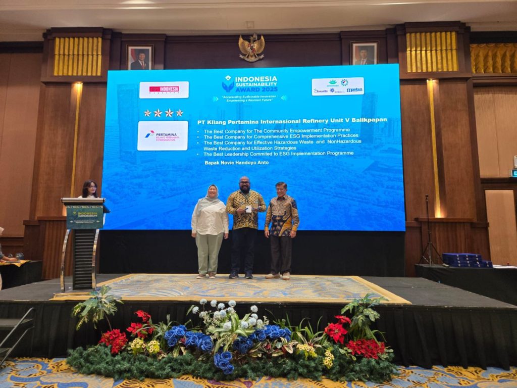 MEDIAONLINEIDC.COM; BALIKPAPAN–PT Kilang Pertamina Internasional (KPI) Unit Balikpapan kembali mengukir prestasi yang membanggakan di bidang keberlanjutan lingkungan. Kali ini, PT KPI Unit Balikpapan berhasil meraih penghargaan Indonesia Sustainability Awards (ISA) Tahun 2025. Penghargaan diraih melalui Program Environmental Initiatives (Building A Greener Legacy) dan Program Tanggung Jawab Sosial dan Lingkungan (TJSL) Kampung Atas Air Indah Bersih dan Nyaman (KARINDANGAN). Penganugerahan digelar di el Hotel Royal, Bandung.